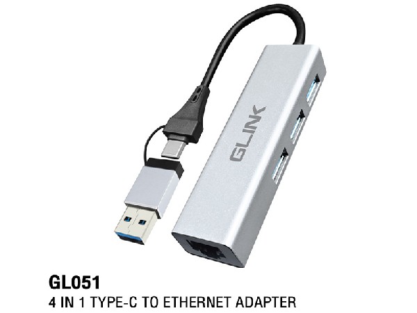G-LINK GL-034 USB+TYPE-C TO GIGABIT RJ45 + 3 USB 3.0 PORT